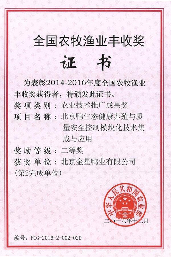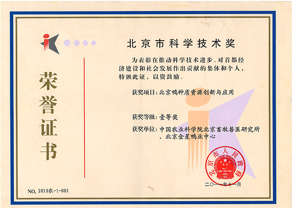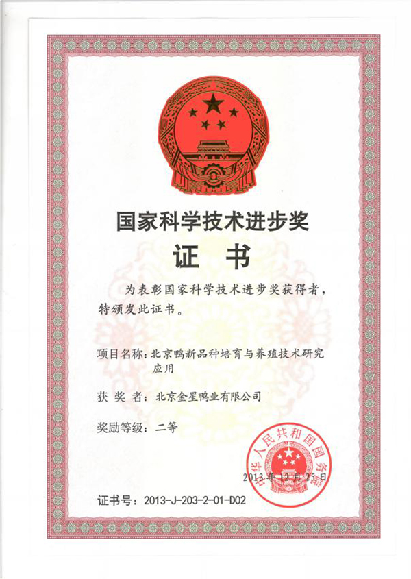 經(jīng)過二十余年的發(fā)展,北京金星鴨業(yè)有限公司的社會影響力愈來愈高,通過了ISO9001質(zhì)量管理體系、ISO22000食品安全管理體系、ISO14000環(huán)境體系等認證,并獲得了北京市模范集體、國家科學(xué)技術(shù)進步二等獎、北京市科技進步一等獎、全國農(nóng)業(yè)標準化示范農(nóng)場、北京市農(nóng)業(yè)產(chǎn)業(yè)化重點龍頭企業(yè)、農(nóng)業(yè)產(chǎn)業(yè)化國家重點龍頭企業(yè)、國家高新技術(shù)企業(yè)、北京鴨地理標志產(chǎn)品首家授權(quán)使用單位等多項榮譽。