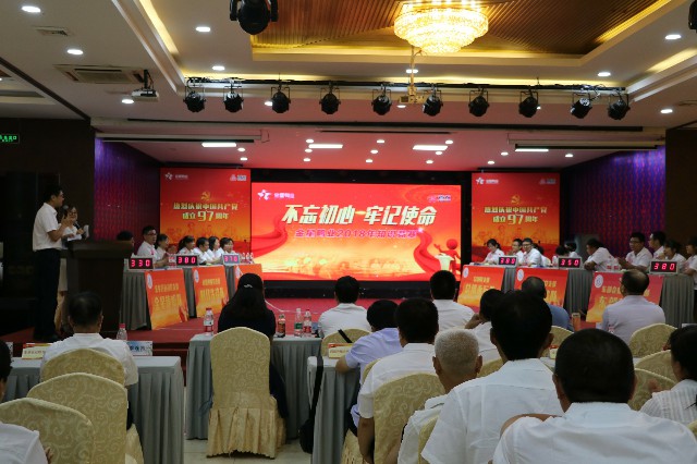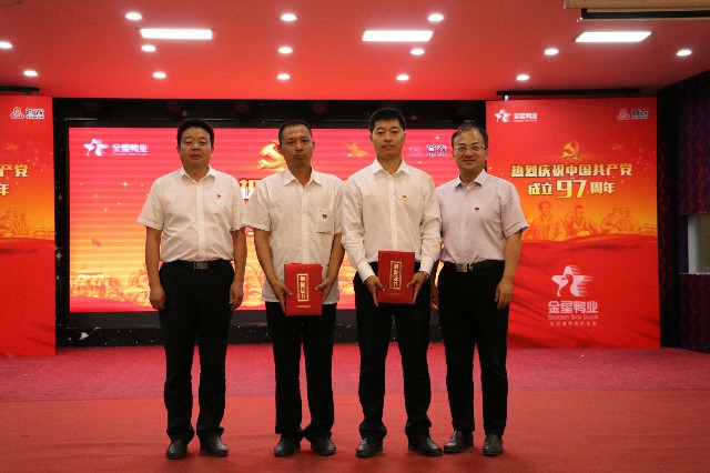 為進一步深入學(xué)習(xí)貫徹黨的十九大精神,喜迎黨的97周年誕辰,6月29日下午,金星鴨業(yè)組織開展了以“不忘初心、牢記使命”為主題的紀念中國共產(chǎn)黨成立九十七周年活動,活動包括“聯(lián)合知識競賽”、“兩優(yōu)一先表彰”、“黨委書記上黨課”。公司六個黨支部全體黨員、入黨積極分子和員工200余人參加了活動。