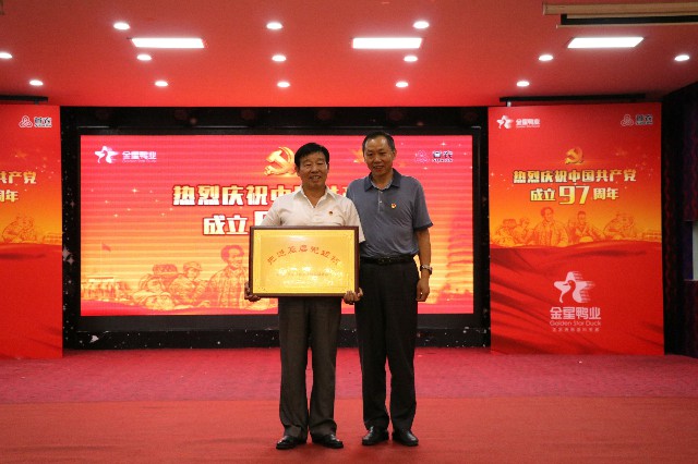 先進基層黨組織(承德三元金星鴨業(yè)有限責(zé)任公司黨支部)與領(lǐng)導(dǎo)合影