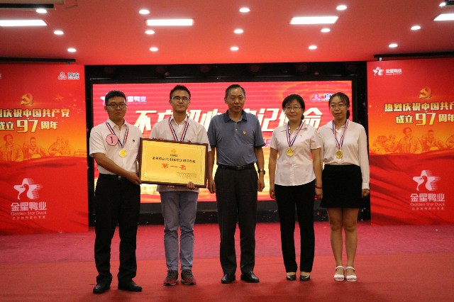 知識競賽環(huán)節(jié),參賽的六支隊伍由公司所屬的六個黨支部分別推薦。他們分工協(xié)作、熱情飽滿、斗志昂揚、團結(jié)拼搏,為大家獻上一場緊張激烈、精彩紛呈的精彩賽事。經(jīng)過兩個多小時的激烈角逐,公司總部黨支部代表隊奪得桂冠,金星分公司黨支部和西部養(yǎng)殖公司黨支部分列二三名。
