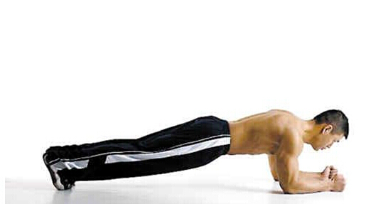 三、標準動作:俯臥,雙肘彎曲支撐在地面上,肩膀和肘關(guān)節(jié)垂直于地面,雙腳踩地,身體離開地面,軀干伸直,頭部、肩部、胯部和踝部保持在同一平面,腹肌收緊,盆底肌收緊,脊椎延長,眼睛看向地面,保持均勻呼吸。