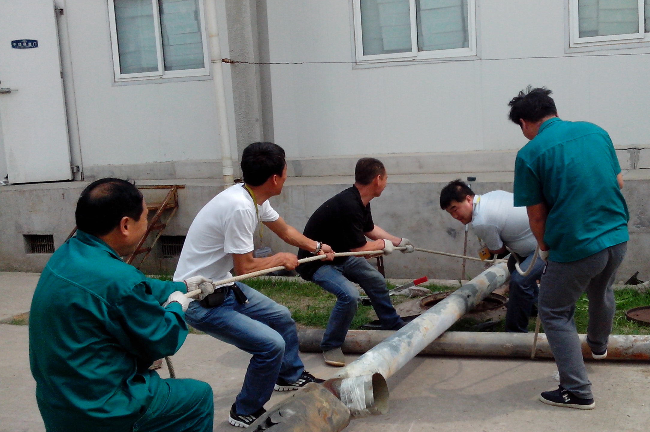 ? ? ? ? 維修當天,烈日炎炎,工作人員不僅要穿著厚厚的工作服,還要匍匐在直徑僅為60多厘米的空間內對破損的管道進行拆解、更換。烈日雖然早已使維修人員汗流浹背,但為確保管道暢通,更早地完成更換任務,大家都卯足干勁,一點也沒有松懈,新的沖霜管道成功在一周內投入使用。