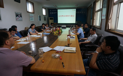 ? ? ? ? 7月14日,公司召開市場工作專題會,會議就當(dāng)前公司營銷面臨的一系列問題展開討論。公司總經(jīng)理王凱,黨委書記、副總經(jīng)理胡勝強(qiáng),副總經(jīng)理王曉東以及金星分公司、承德鴨業(yè)、銷售公司主管銷售工作的負(fù)責(zé)人參加了會議。