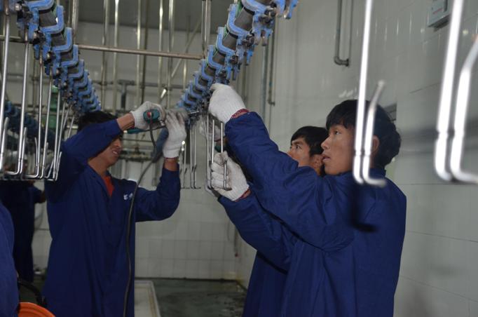 ? 為迎接出口復(fù)審,3月初,承德鴨業(yè)對(duì)凈膛間頂板、預(yù)冷間大鏈條等設(shè)備設(shè)施進(jìn)行改造更換。