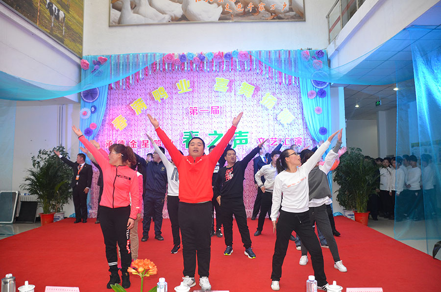 ? 演出結(jié)束后,雷坤石發(fā)表致辭,他表達(dá)了對(duì)公司全體員工的感謝和美好祝愿!金星鴨業(yè)黨委書記王宏偉講話指出,在重壓力下,承德鴨業(yè)立足當(dāng)前,謀劃長遠(yuǎn),克服了體制改革等一項(xiàng)項(xiàng)難題,困境中突圍,實(shí)現(xiàn)了轉(zhuǎn)型升級(jí)的跨越式發(fā)展,對(duì)此他給予肯定,同時(shí)祝愿2017年承德鴨業(yè)再創(chuàng)佳績。最后公司經(jīng)理史學(xué)蓮進(jìn)行總結(jié)講話,要求全體員工肩負(fù)“拼搏、鞏固、提升”的重任,共同努力,時(shí)刻踐行承諾:我的崗位我負(fù)責(zé),我在崗位您放心!