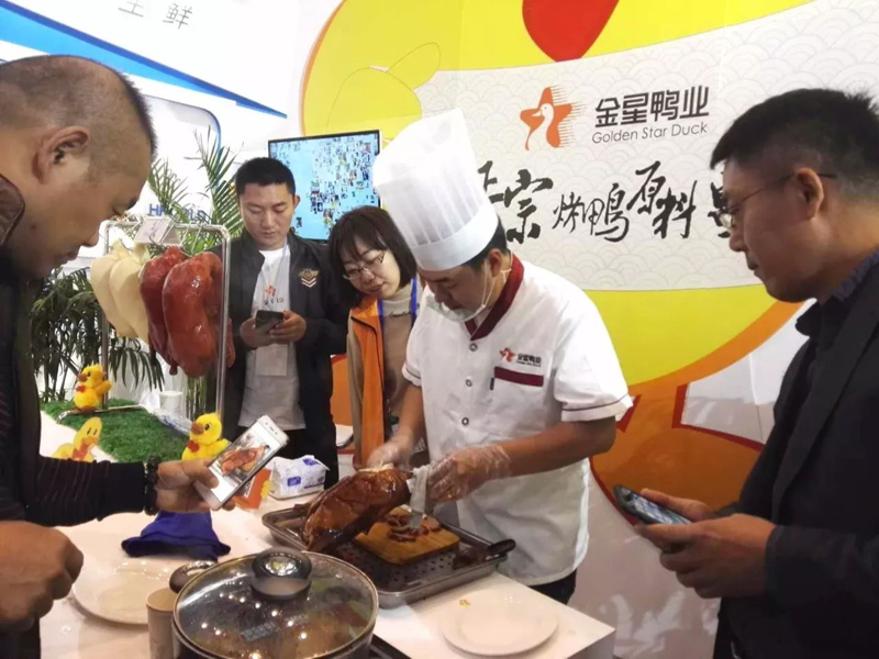 10月12日,2017年江蘇國際餐飲博覽會在南京國際展覽館正式拉開帷幕,金星鴨業(yè)帶著正宗北京烤鴨來到了烤鴨的故鄉(xiāng)南京。