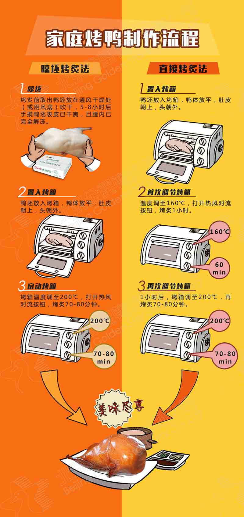 金星鴨業(yè)家庭版烤鴨坯肉質(zhì)細(xì)嫩,肌間脂肪和皮下脂肪豐富??局七^程中,鴨皮膨化,大部分脂肪融化流出體外,這就是烤鴨的酥。一小部分融化的肌間脂肪滲入到肌肉中,與肌肉纖維中的水份混合,形成晶瑩的肉汁。鴨肉吃起來一點(diǎn)都不柴,還鮮嫩多汁。(這與和牛肉大理石花紋雪花肉同樣的原理)